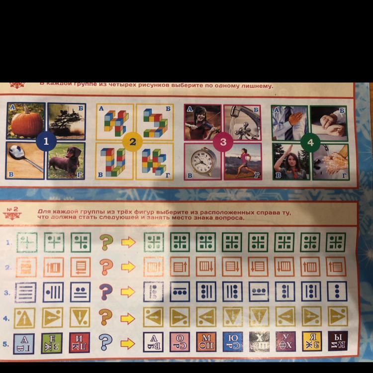 1. В каждой группе из четырёх рисунков выберите по одному лишнему.