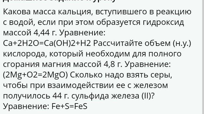1) n (Ca(OH)2) = m/M = 4,44/74 = 0,06 моль