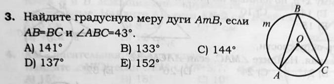 Вписанный угол равен половине дуги, на которую он опирается, т.е. дуга АС равна 43×2=86°