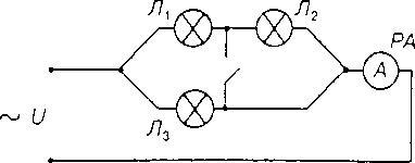 Цепь с 3-мя - одинаковыми лампами. При замыкании ключа ток через амперметр…—