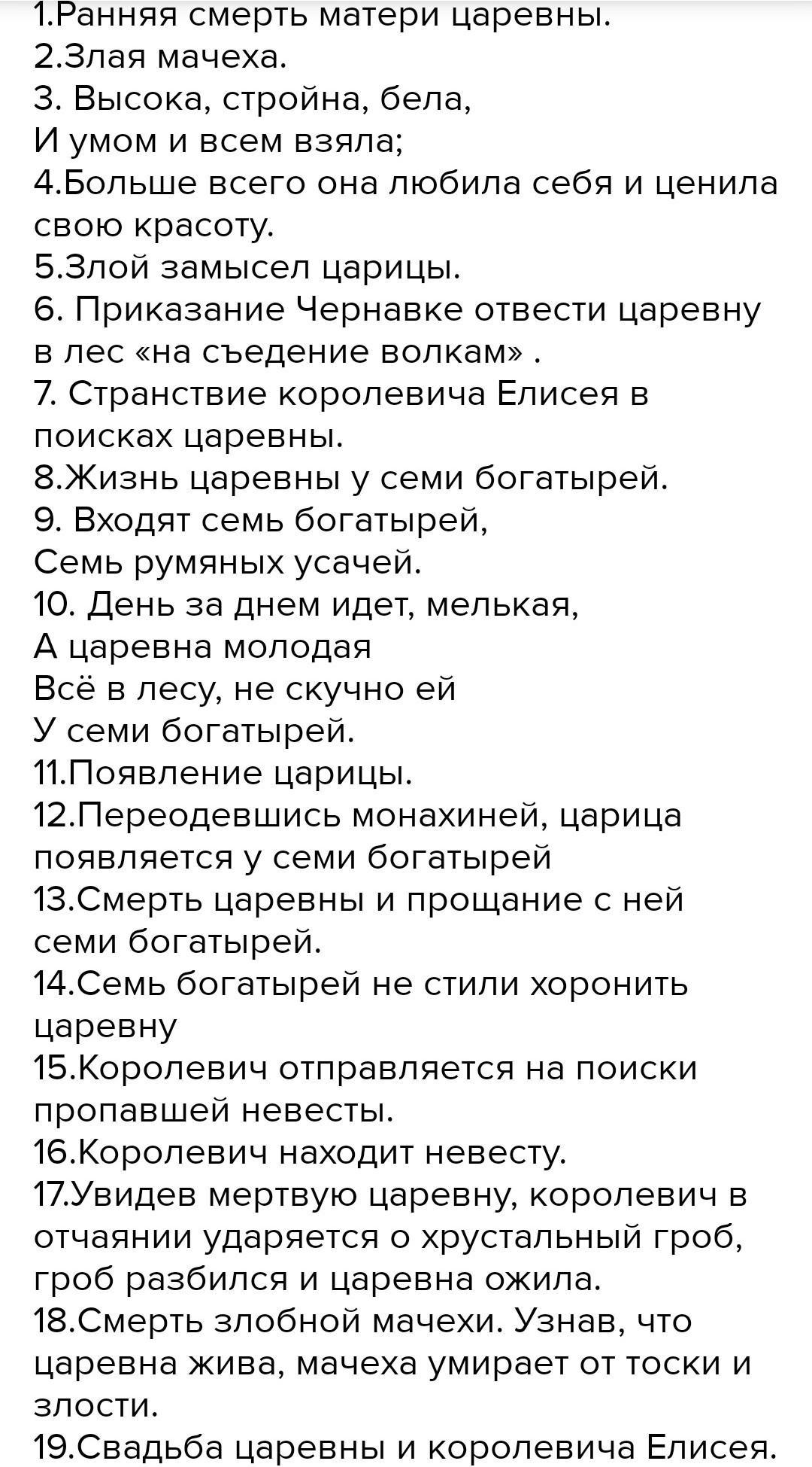 2. Прочитай сказку на стр.64-81 и составь план сказки по образцу внизу. Сказка о мертвой царевне и семи богатырях» 1. Смерть матери. Зависть мачехи к красоте царевны.