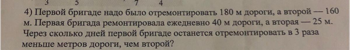 Вторая бригада за тоже время уложит 25 * х метров дороги, а останется ей уложить 160- 25х.