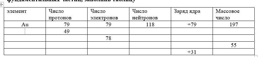 Задание 4 Дайте полное описание химического элемента по названию и количеству фундаментальных частиц, заполнив таблицу