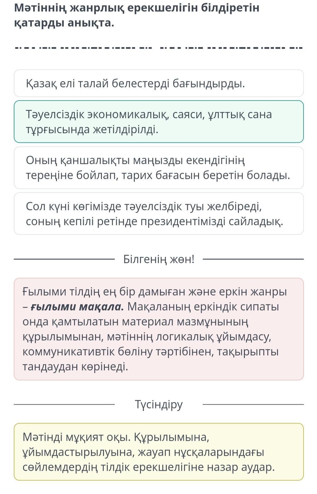 Мәтіннің жанрлық ерекшелігін білдіретін қатарды анықта .