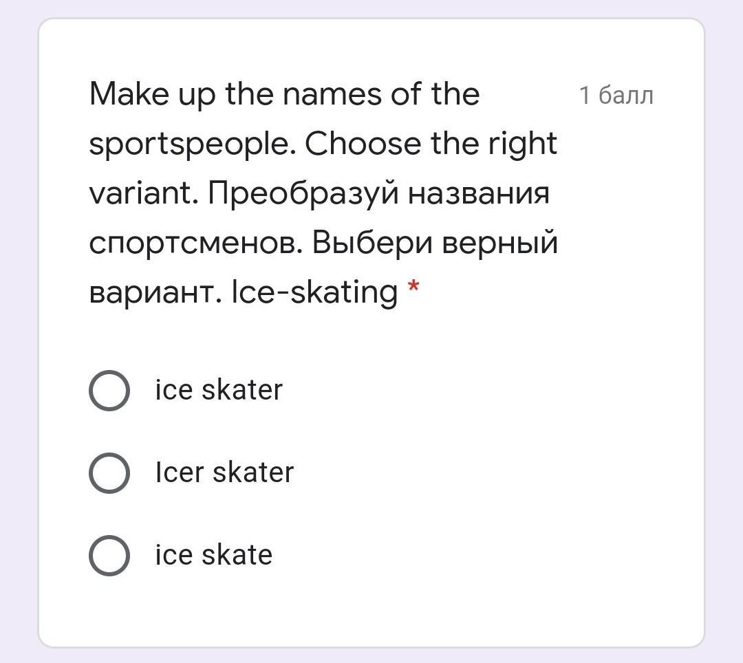 Make up the names of the sportspeople. Choose the right variant. Преобразуй названия спортсменов. Выбери верный вариант. Ice-skating *