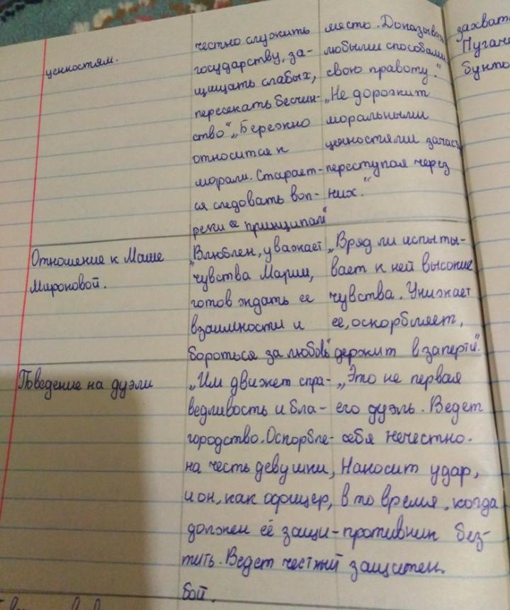 Гринева и Швабрина. Заполните таблицу: