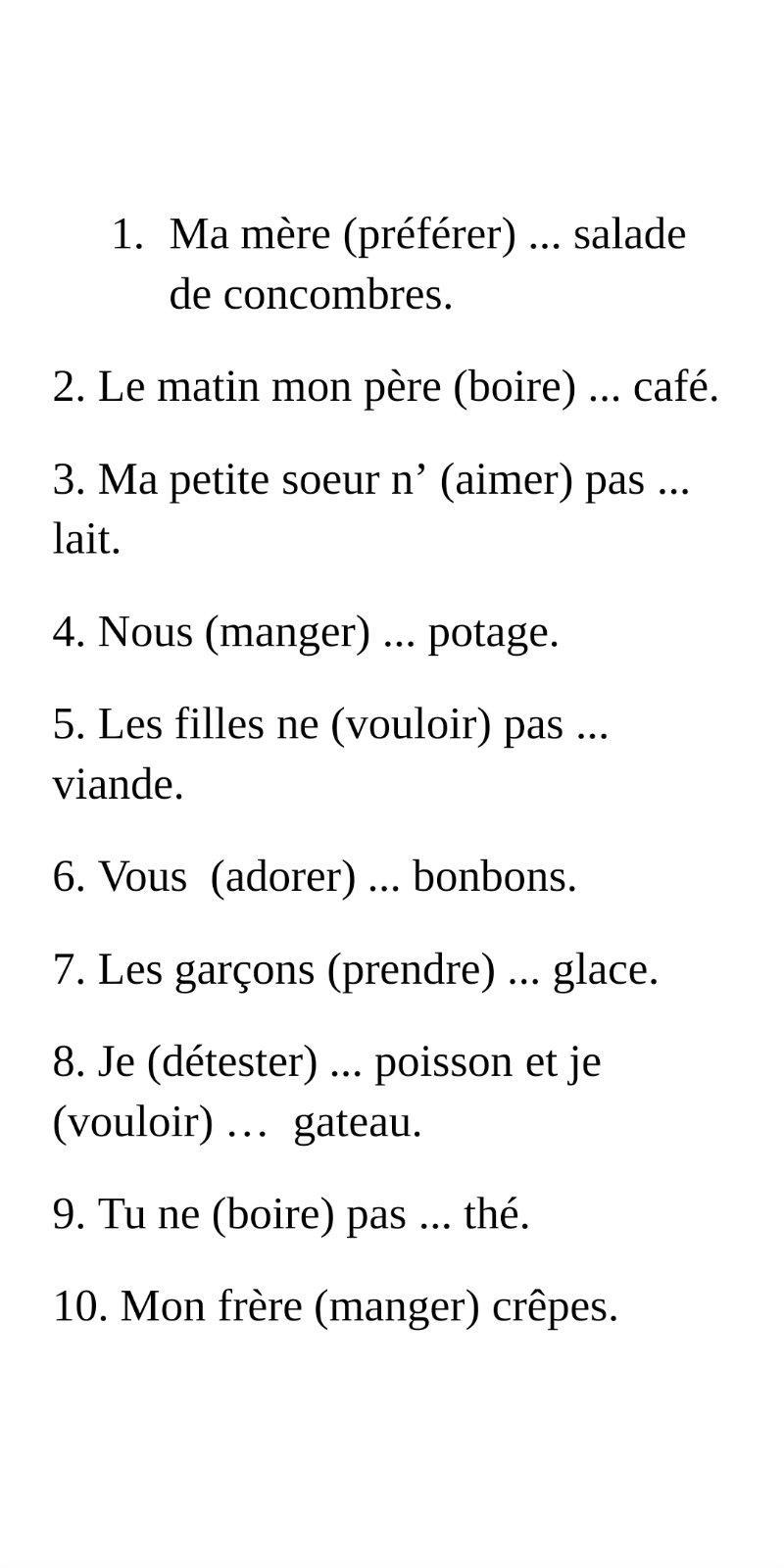 3)Ma petit soeur n' (aimer) pas.... Lait