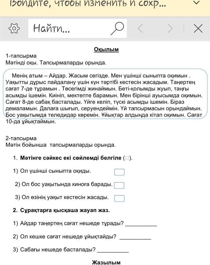 Ответ:1.ол үшінші сыныпта оқиды,ол өзінің уақыт кестесін жасады