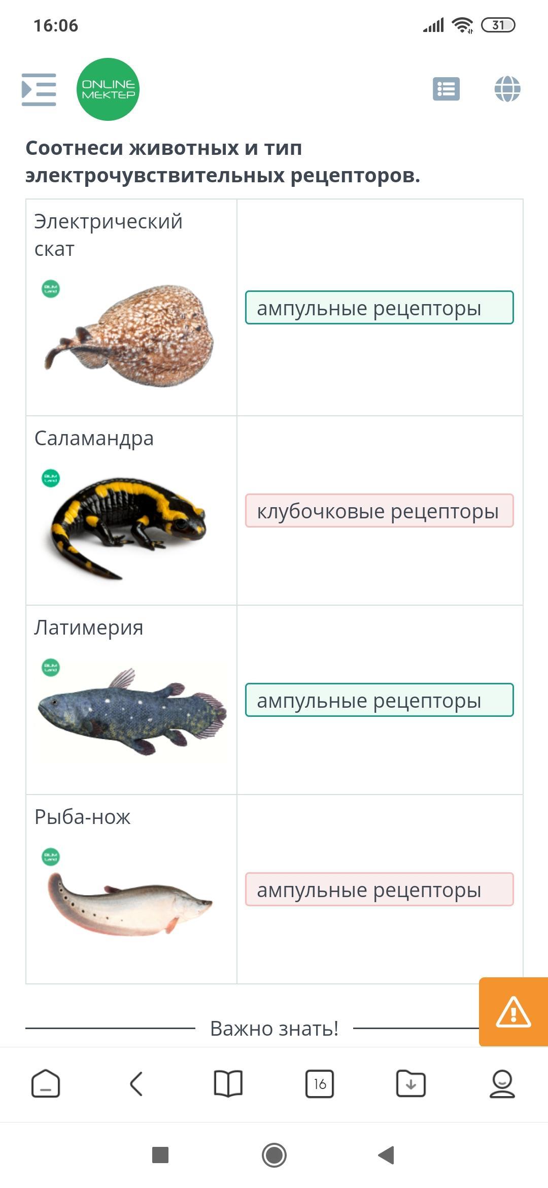 Соотнеси животных и тип электрочувствительных рецепторов.