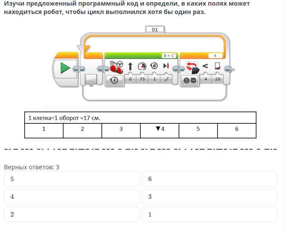 изучи предложенный программный код и определи в каких полях может находиться робот, чтобы цикл выполнился хотя бы один раз?