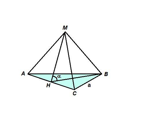 ⇒ ∠МНВ - линейный угол двугранного угла между плоскостями треугольников АВС и МАС.