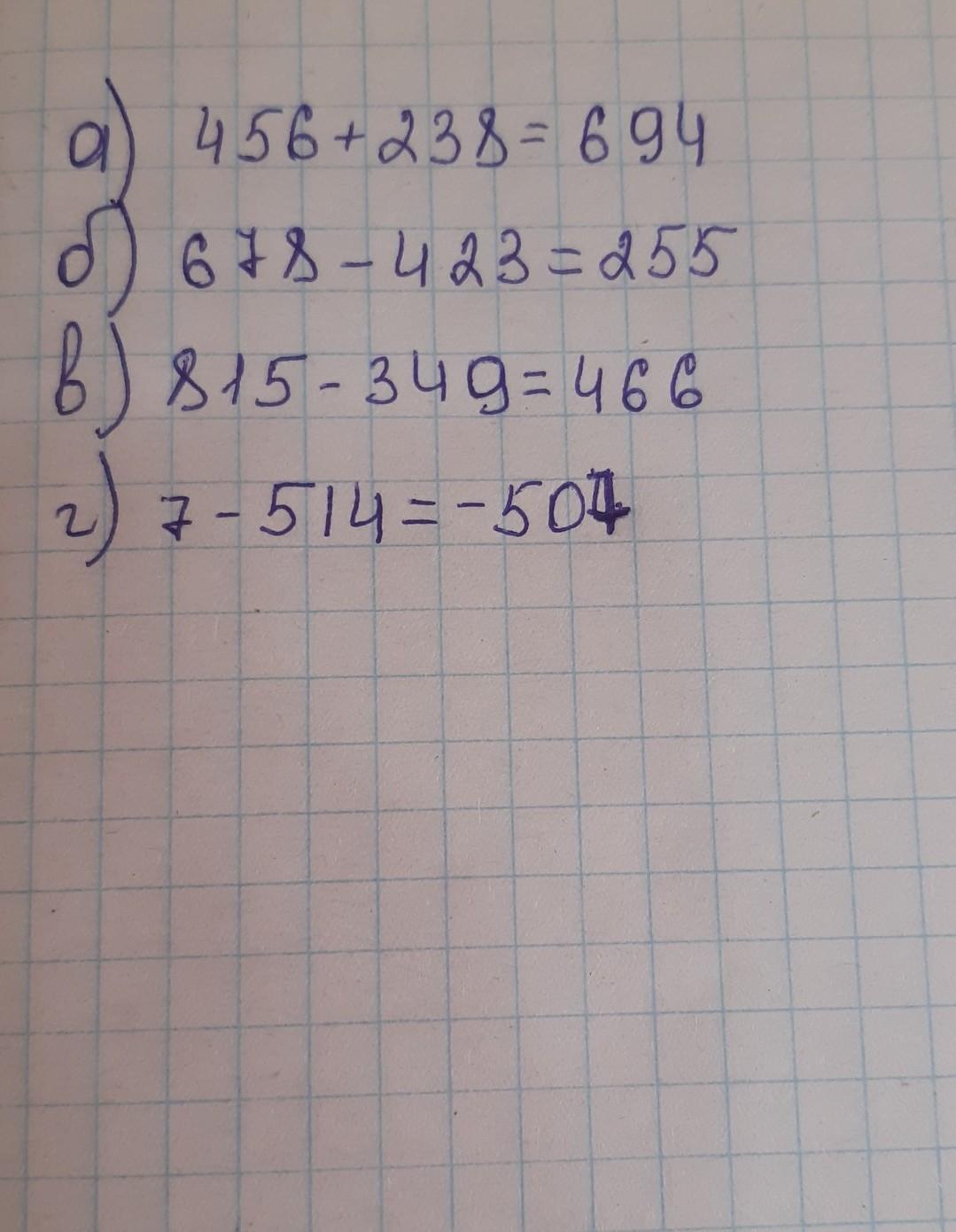 456+238; б) 678-423; в) 815-349;