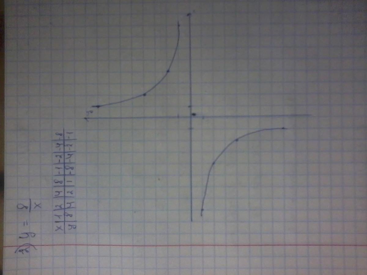 7. Область значений функции — объединение двух открытых лучей (−∞;0)∪(0;+∞).