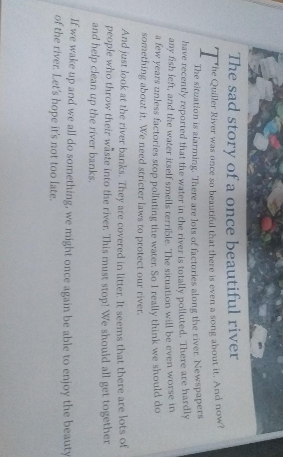 2) the river is covered with garbage, and fish can't live there.
