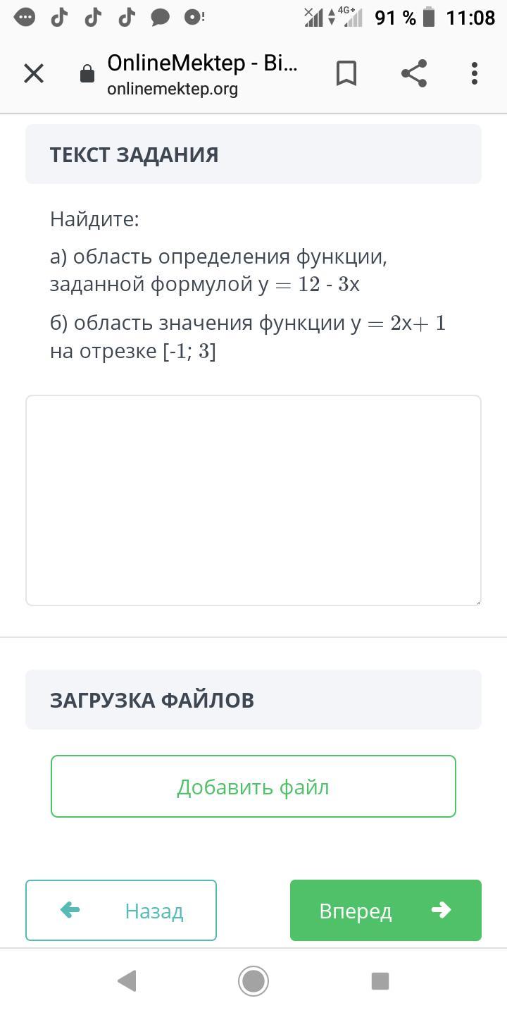 Найдите а) область определения функции заданной формулой y = 12 -3x б) область значения функции y = 2x + 1 на отрезке [-1;3]