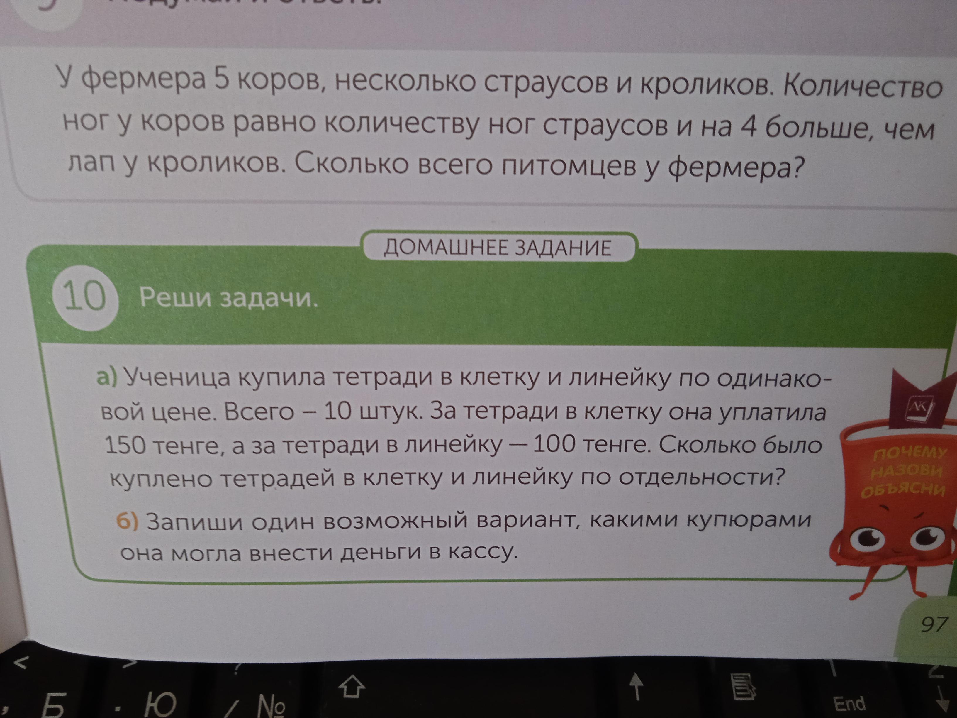 Ответ: 6 тетрадей в клетку, 4 тетради в линейку