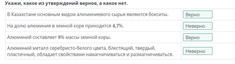 Не верно, так как содержание алюминия в земной коре по данным различных исследователей составляет от 7,45% до 8,14%.