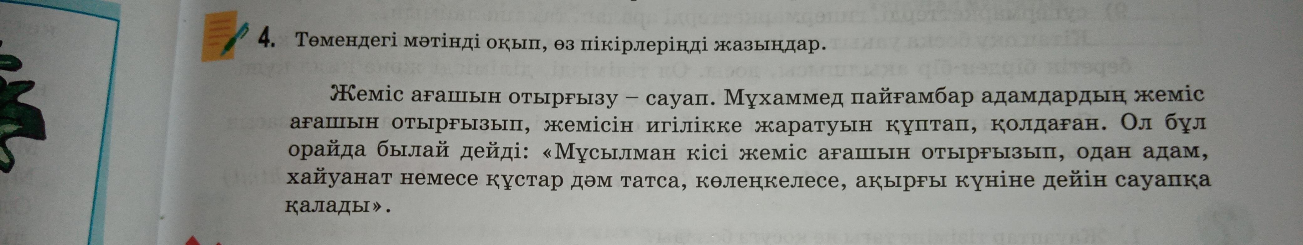 Мен бұл пікірмен келісемін. Себебі жемістің адам ағзасына пайдасы зор. Оны сатып алғаннан өзің отырғызған ағаштан жинап теріп пайдаланған орынды. Өзіңнен артылғанын өзгеге берсең ол оған жасаған жақсылығың болады, ал кез келген жақсылық сауап. Сол сияқты құстар да өз тамағын сол жеміс ағашынан тауып жатса, ол да сауап .