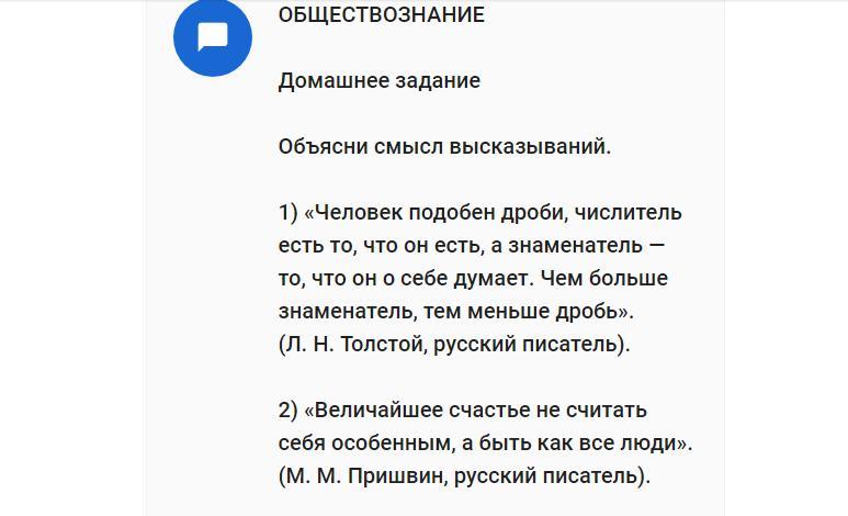 1) «Человек подобен дроби, числитель есть то, что он есть, а знаменатель — то, что он о себе думает. Чем больше знаменатель, тем меньше дробь».