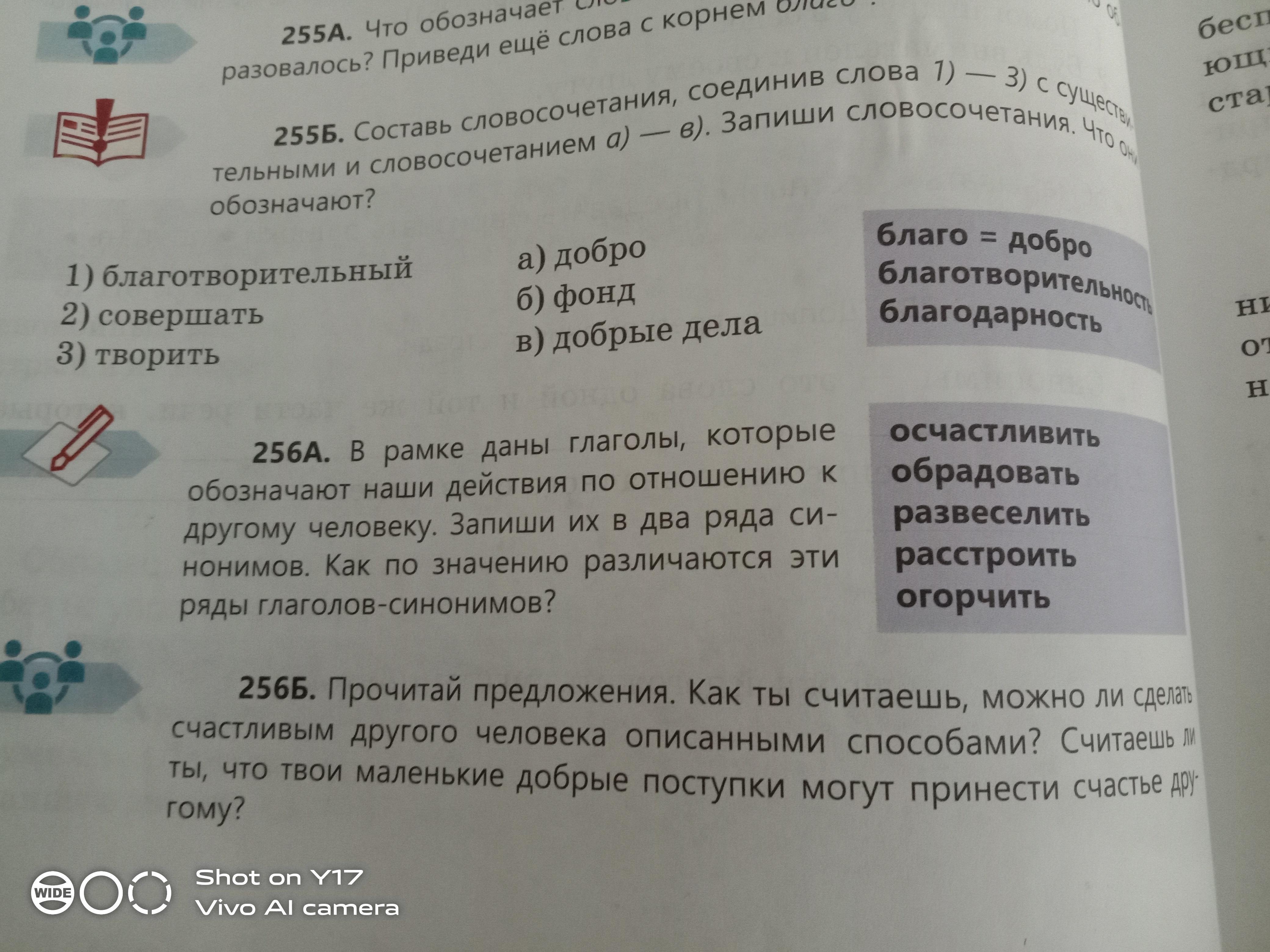 Словосочетания: осчастливить человека, обрадовать маму, развеселить друга, расстроить учителя, огорчить родителей.