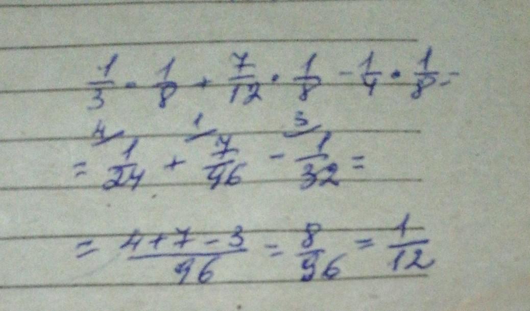 1/3•1/8+7/12•1/8-1/4•1/8=1/24+7/96-1/32=