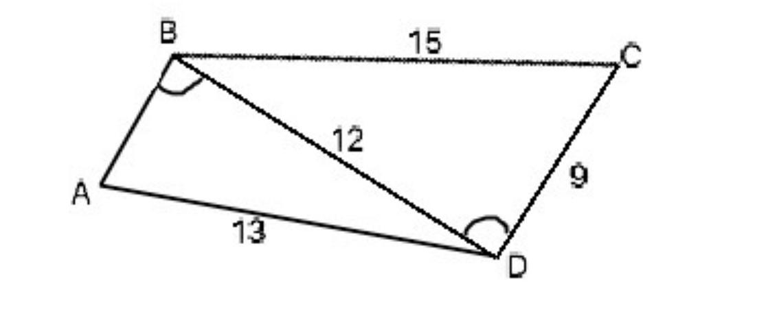 В треугольнике ВСD отношение сторон CD:BD:BC=3:4:5, что указывает на то, что этот треугольник прямоугольный ( египетский). То, что косинус угла ВDС=0, и этот угол равен 90°, можно найти и по т.косинусов (проверьте). Тогда из равенства ∠АВD=∠CDB треугольник АВС – прямоугольный. По т.Пифагора найдем АВ=√(13²-12²)=5 см.