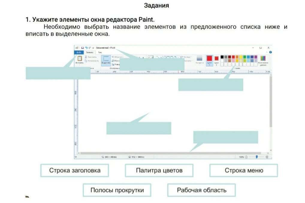 Необходимо выбрать название элементов из предложенного списка ниже и вписать в выделенные окна.