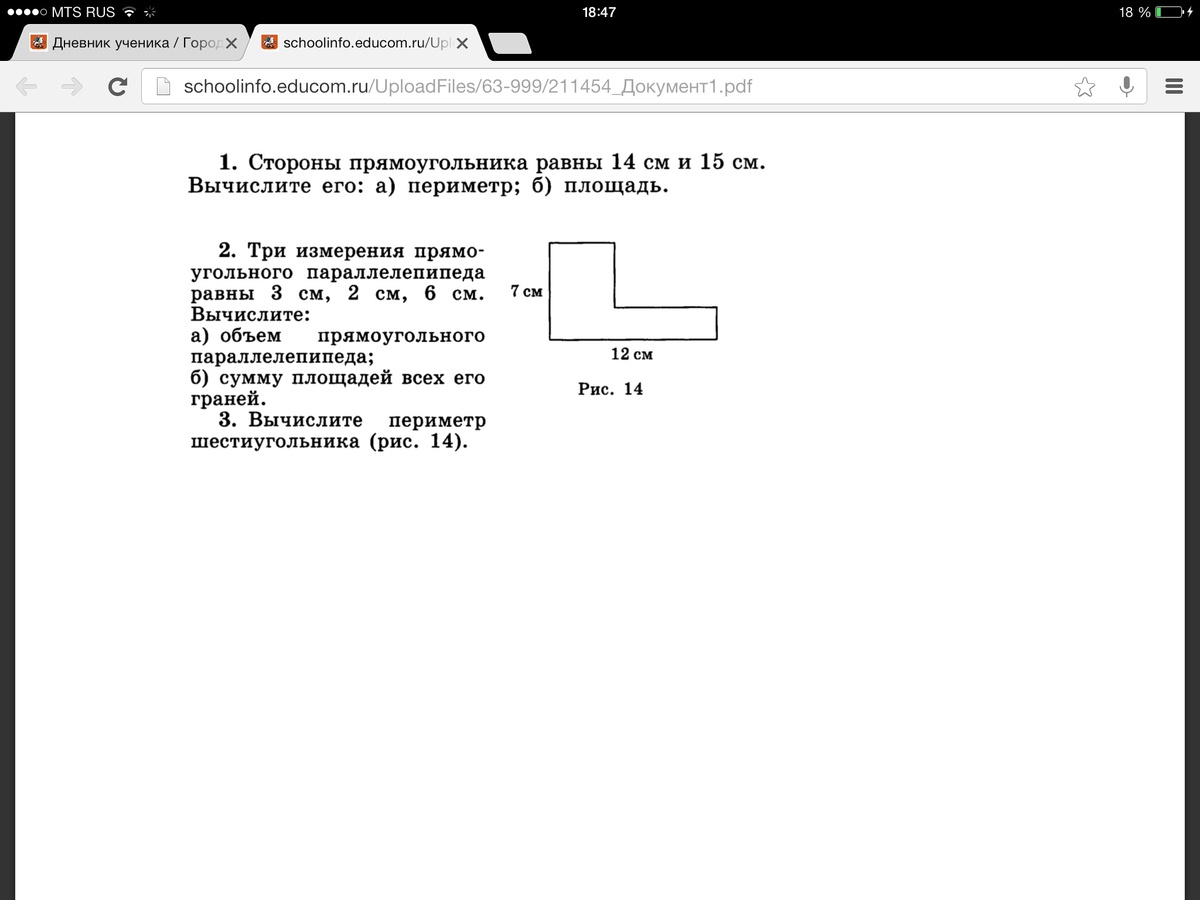 Три измерения прямоугольного параллелепипеда равны 3 см, 2 см, 6 см. Вычислите: