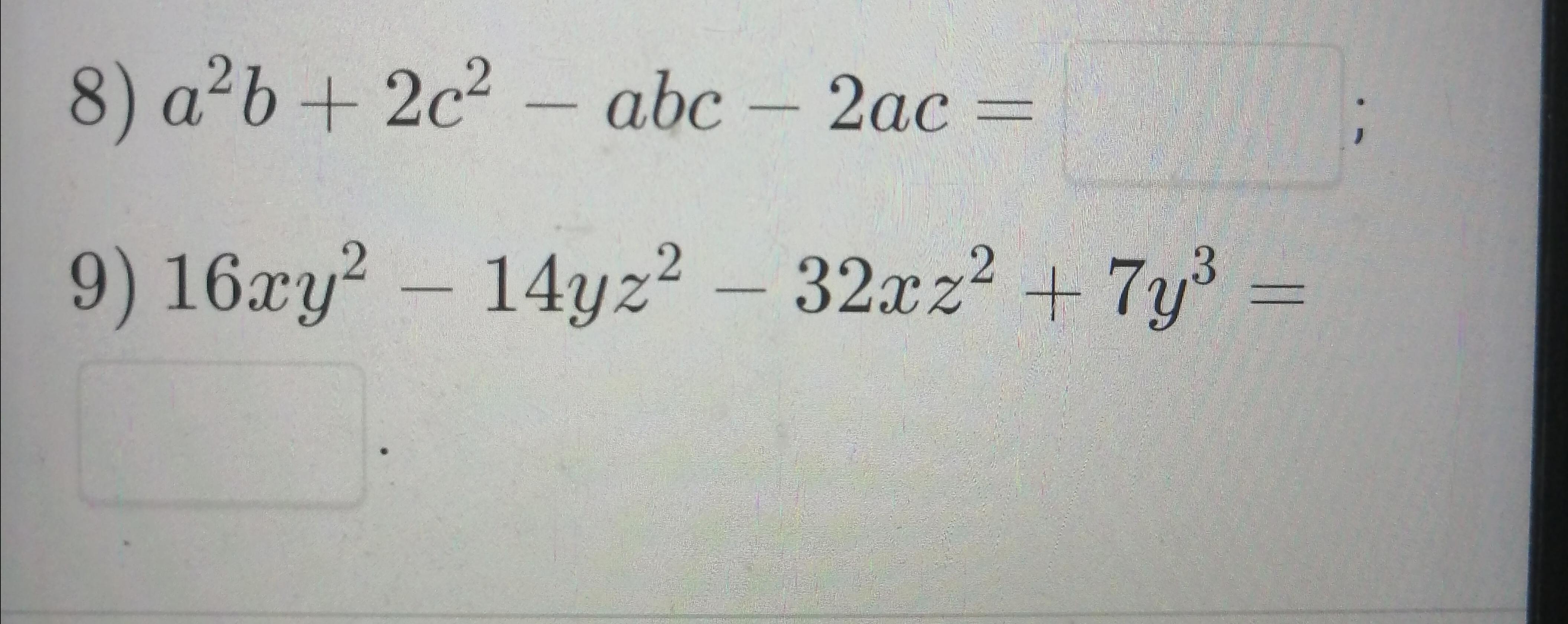 8)(a-c)(ab-2c)