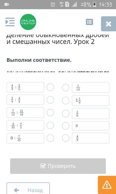2/9 : 4/3 = 1/6