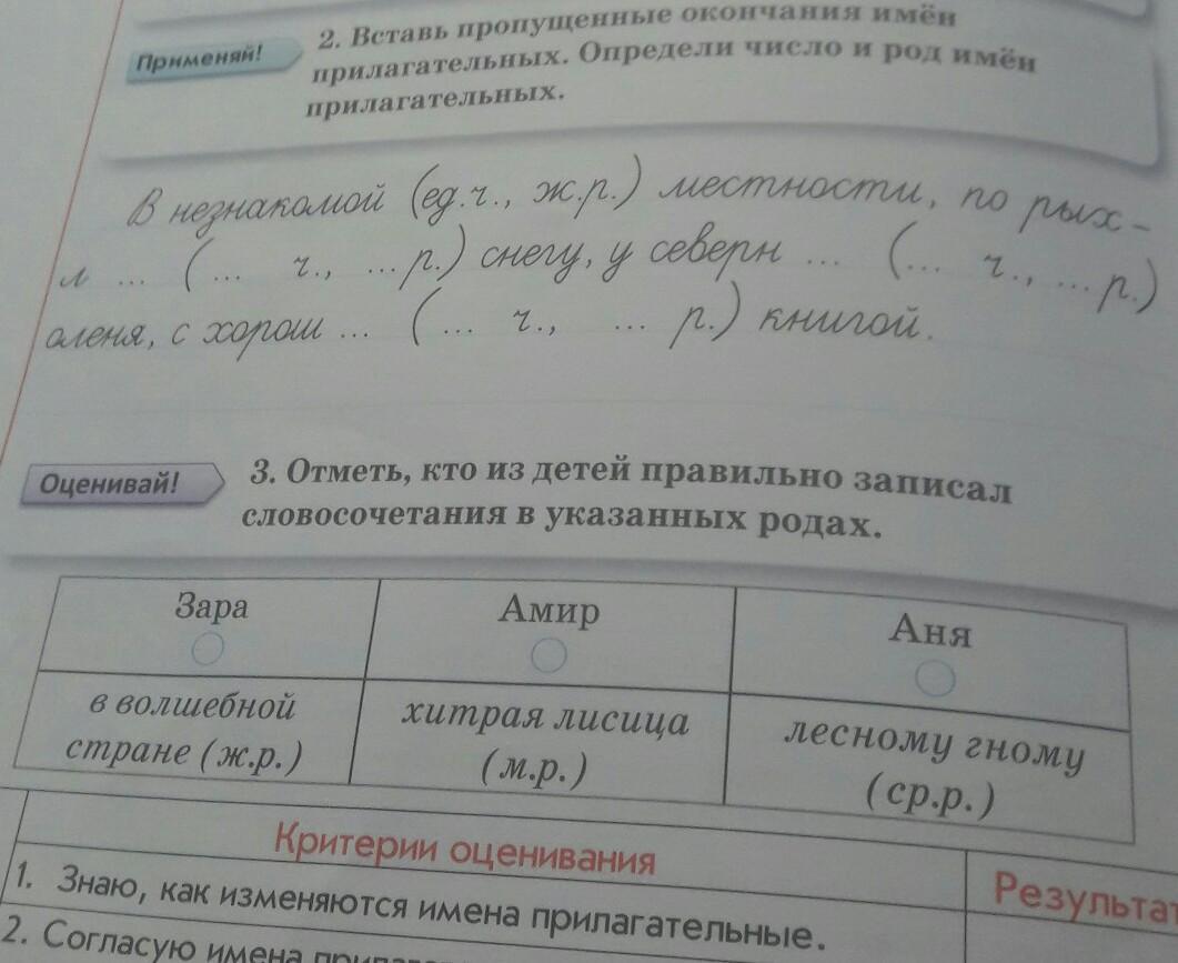 Вставь пропущенные окончания имён прилагательных Определи число и род имён прилагательных