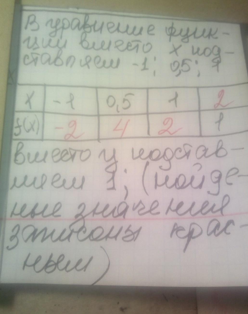 Там где x=-1 под ним f(x)= -2 ; там где x=0.5 под ним f(x)=1 ;там где x=1 под ним f(x) = 2 ; там где f(x) =1 над ним x=2
