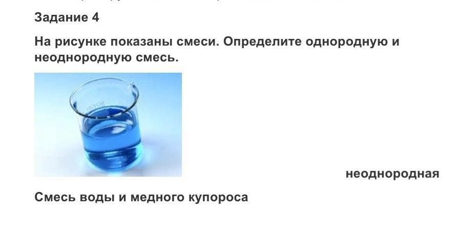 На рисунке показаны смеси. Определите однородную и неоднородную смесь.
