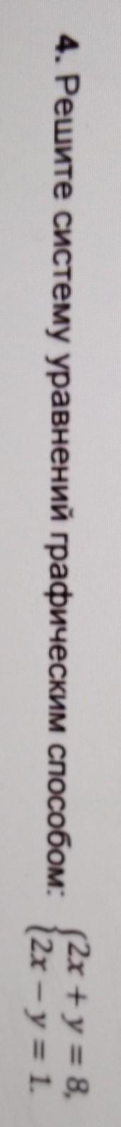 Нужно каждое уравнение отдельно написать. потом чертишь с низу каждого уравнения по таблице. Там берёшь любое число вместо х, например 2, подставляешь и находишь игрик, это будет первая координатам на графике, потом возьми ещё одно любое число вместо х например 3, подставляешь 3 вместо х и находишь у. так же и со вторым уравнение, потом чертишь координатную плоскость, ну и так отмечаешь эти точки, вначале две точки первого уравнения чертишь и проводишь линию по ним, и так же со вторым уравнение, ставишь две точки о координатам которые нашёл и соединяешь линией. А там где эти две линии пересекаются, это и есть ответ, надо только записать координаты точки где эти прямые пересеклись.