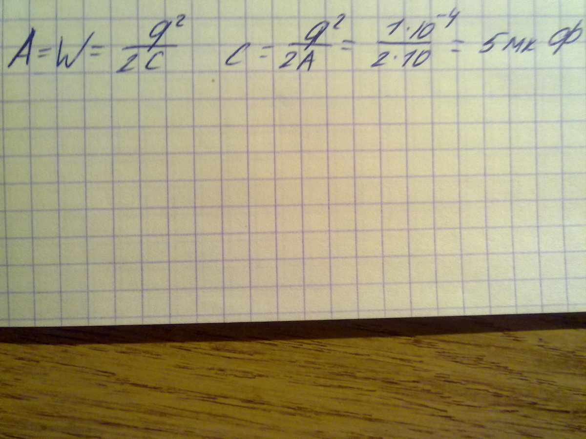 Определите емкость конденсатора, если известно, что при сообщении ему заряда 0,01 Кл он совершает работу 10Дж
