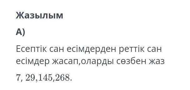 деп саналамызғой.тура сол секілді.Солай реттік санға келтіріп, әріптермен жаз дейді