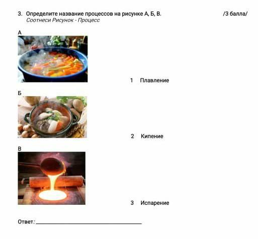 определите название процессов на рисунке А,Б,В соотнеси рисунок процесс 1 правление 2 кипение 3 испарение помогите пж сор