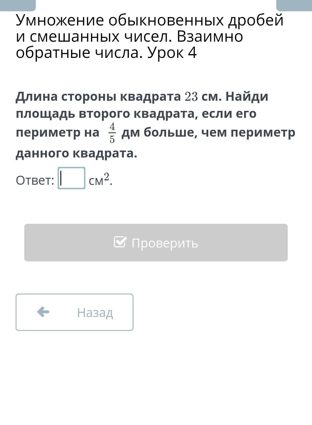 Длина стороны квадрата 23 см. Найди площадь второго квадрата, если его периметр на