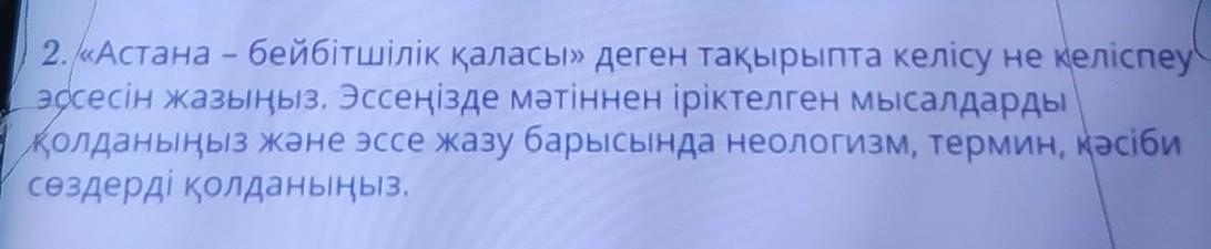 эссесін жазыңыз. Эсееңізде мәтіннен іріктелген мысалдарды