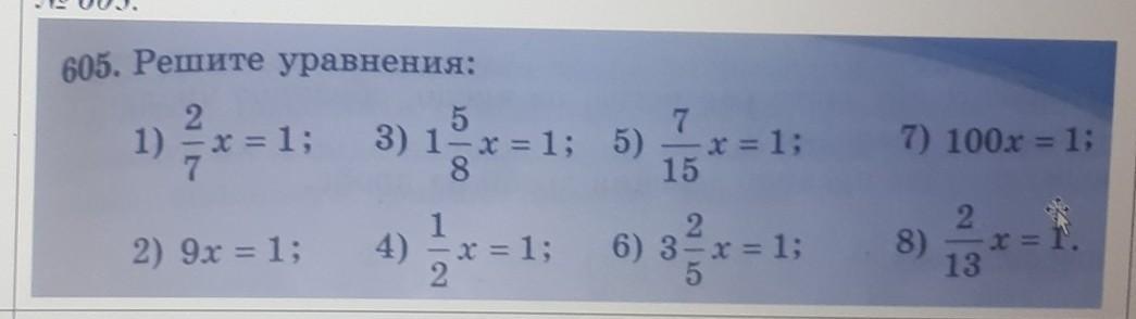 Ответ:1)х=3.5 2)1/9 3)1. 5/8 4)х=2 5)2. 1/7 6)5/17 7) х=0.01 8)6.5
