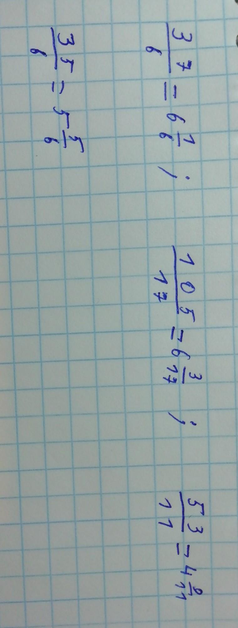 Преобразуйте смешанные числа в неправильные дроби, а неправильные дроби в смешанные числа. 37/6,105/17,5 3/11,3 5/6