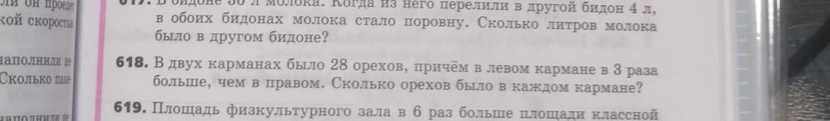Ответ: 7 орехов — в правом кармане, 21 орех — в левом кармане.