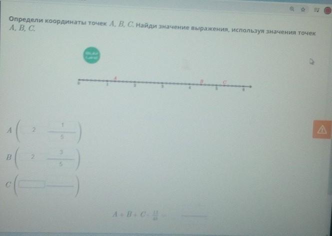 Определи координаты точек А, В, С. Найди значение выражения, используя значения точек