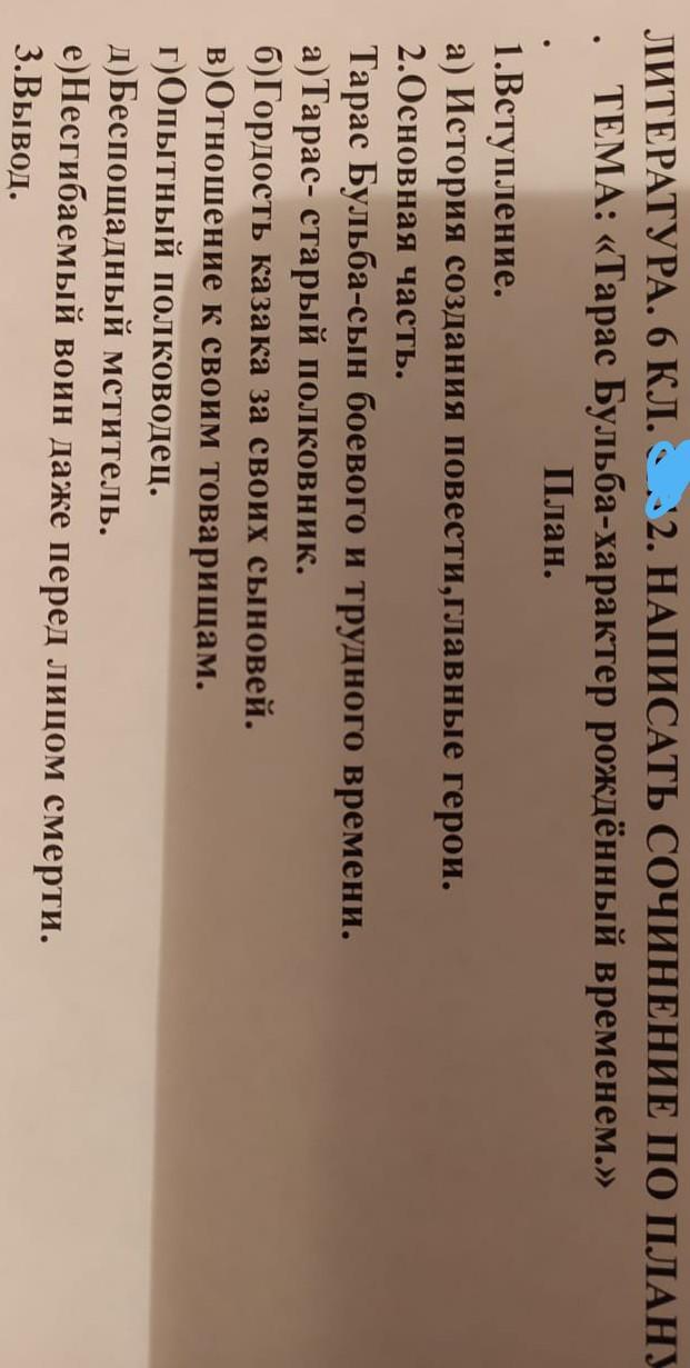 Тарас Бульба – это центральный персонаж повести Н.В. Гоголя. Этот человек настоящий воин, истинный казак. И характер его был соответствующим. Вот что говорит о его характере Н.В. Гоголь: «Тарас был один из числа корен-ных, старых полковников: весь был создан для бранной тревоги и отличался грубой прямотой своего нрава. Неугомонный вечно, он считал себя законным защитником православия». Тарас очень силен. И, несмотря на его преклон-ный возраст, в нем еще не угасла воинская доблесть и дух казака. В бою Та-рас ничуть не хуже молодых казаков. Он жесток и беспощаден к врагам. Та-рас Бульба не простил даже своему сыну Андрию предательства. Он собст-венноручно лишил жизни сына: «Я тебя породил, я тебя и убью!». Тарас уби-вал не сына, он стрелял во врага. Своих товарищей наш герой уважал, в беде казаков никогда не оставлял. Для него смыслом жизни были военные похо-ды. Как все казаки он был патриотом православной Русской земли, и свой долг видел в защите ее от ненавистных басурман. Тараса нельзя назвать оп-ределенно добрым или жестоким. Все зависит от положения человека в соз-нании Тараса. Например, он был жесток к Андрию, потому что тот стал вра-гом и даже когда Остап предложил похоронить брата, Тарас отказался. «По-гребут его и без нас! Будут у него плакальщицы и утешницы!» - сказал Тарас. Но когда погиб Остап, наш герой устроил пышные поминки по сыну. Он гра-бил и убивал всех поляков. И правительство Польши решило остановить Та-раса. Гетману Потоцкому было поручено убить казака. Несколько дней укра-инские воины уходили от погони. Но все же Потоцкий догнал полк Тараса. Тарас решил прорваться через ряды поляков. Но в пылу битвы казак выронил люльку, сопровождавшую его во всех сражениях. Наклонился он поднять ее и вдруг на него напрыгнули воины Потоцкого. Тараса связали и решили каз-нить. Для казни было выбрано дерево, верхушка которого была разбита грозой. Казака приковали к дереву и подожгли. Во время казни Тарас вел себя мужественно. Даже на костре он оставался атаманом и, словом помогал казакам спастись. Я считаю Тарас – это герой своего времени.