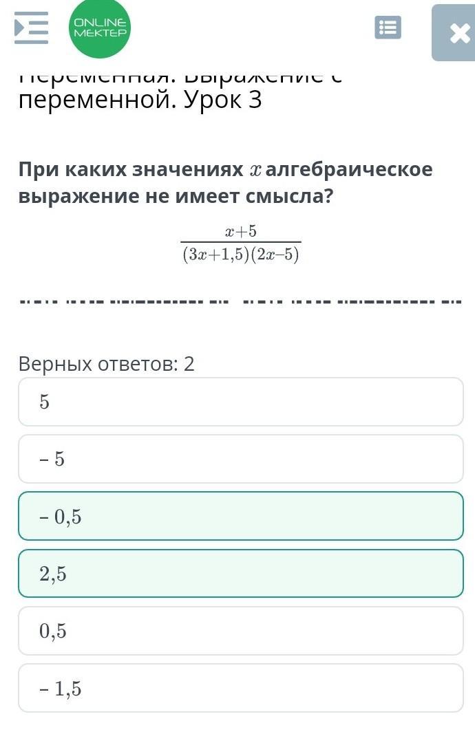 Ответ:-0,5 2,5