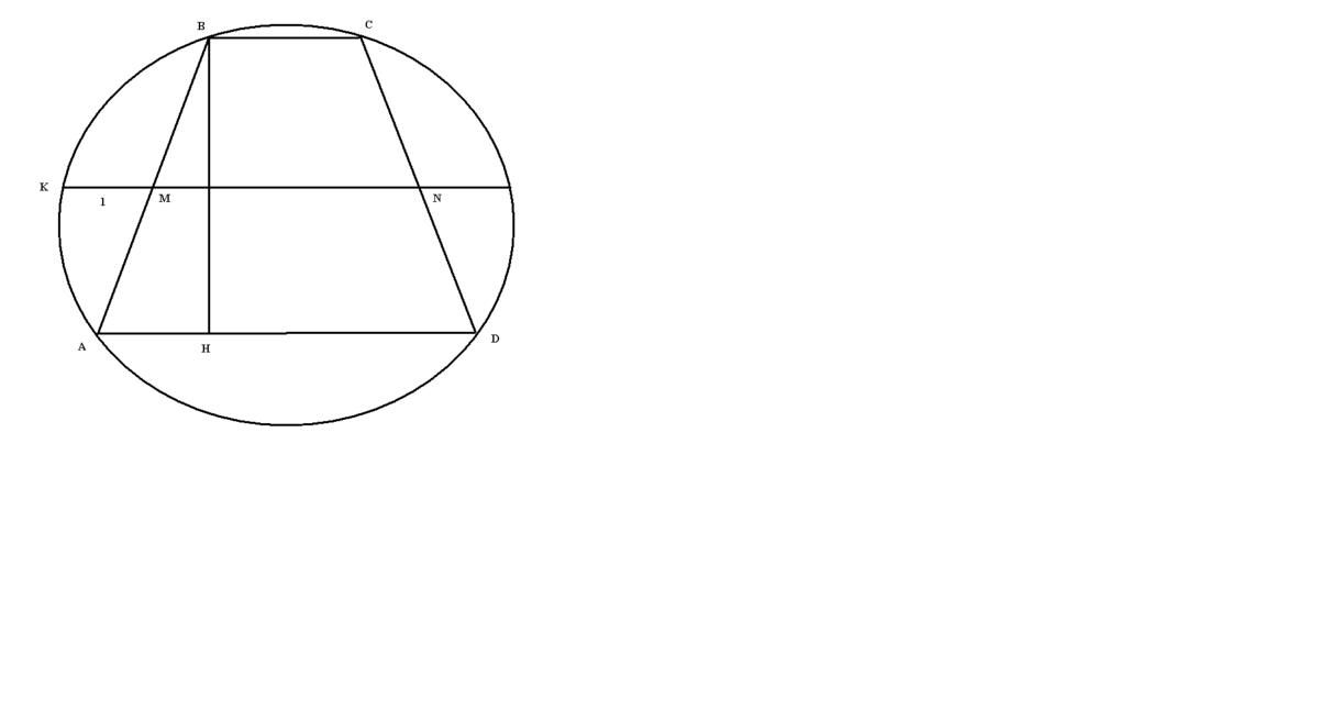 Воспользуемся свойством хорд , так как трапеция будет равнобедренная (так как в нее можно описать окружность ) то