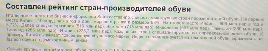 первое место по производству обуви-Китай