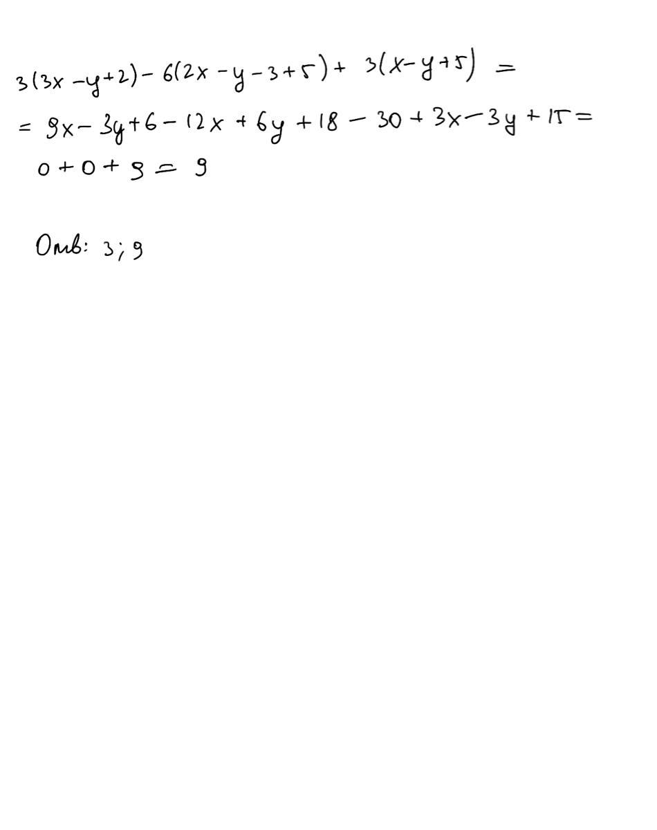 3(3x – y + 2) – 6(2x – y – 3 + 5) + 3(x – y + 5)