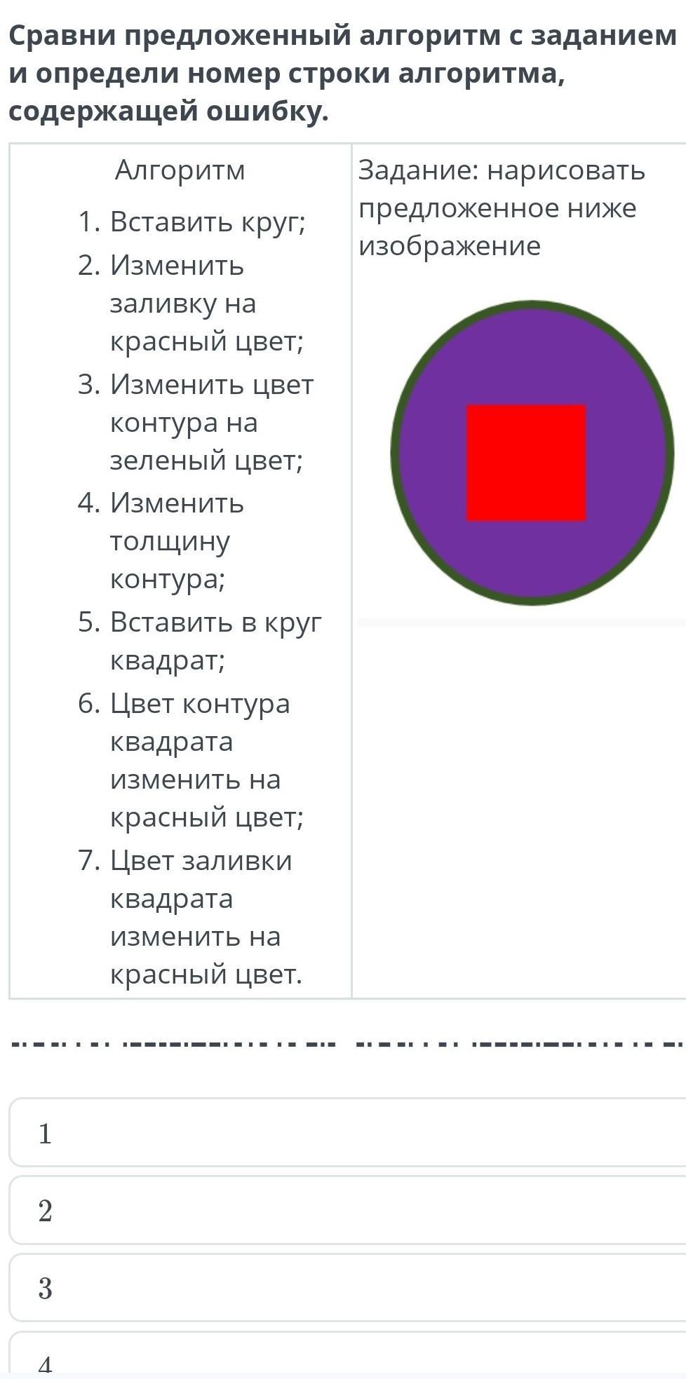 Сравни предложен алгоритм созданием и определи номер строки алгоритма содержащую ошибку