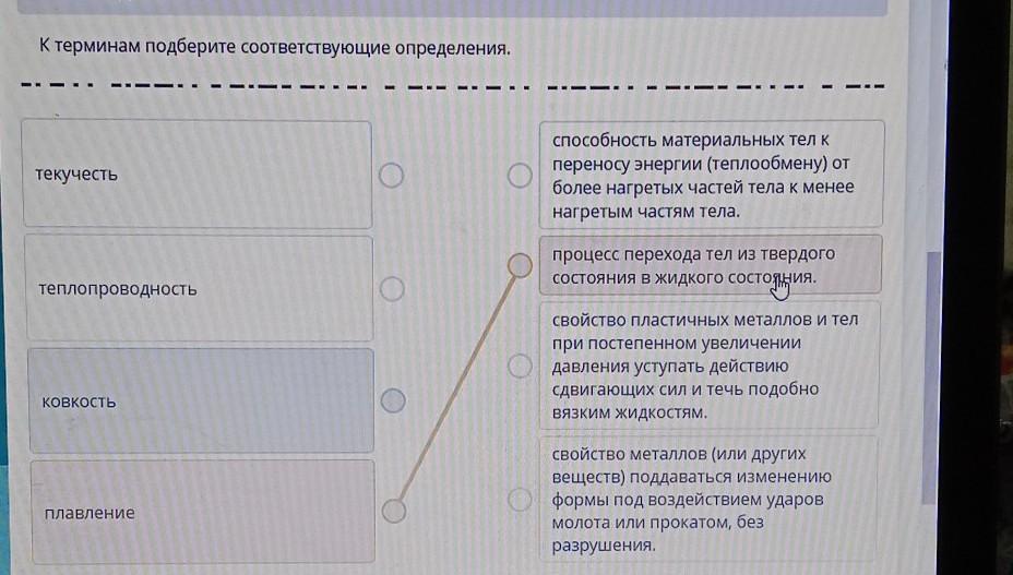 термином подберите соответствующее определение текучесть теплопроводность ковкость плавления